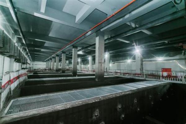 西安市第三污水處理廠并不只是簡單將地上的污水處理廠“下沉”,而是在充分考慮各類安全風(fēng)險等因素后,重新統(tǒng)籌功能分區(qū),實(shí)現(xiàn)資源整合的最優(yōu)配置。項(xiàng)目采用分層布置形式,地下一層為操作層,為設(shè)備調(diào)控中心和人力檢修中心,地下二層為水處理構(gòu)筑物和綜合管廊,污水處理廠的曝氣池、沉淀池等在這里“一應(yīng)俱全”。同時,項(xiàng)目團(tuán)隊(duì)結(jié)合施工方案對地下空間進(jìn)行多維度優(yōu)化,形成立體三維布置,通過優(yōu)化工藝流程、重組單元組團(tuán)、修改構(gòu)筑物布局等方式,提升空間利用效率,將項(xiàng)目占地用地減少了三分之二。