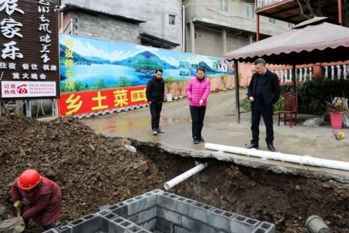 宋莉(中)現場查看截污干管建設和沿線商戶原有設施恢復情況